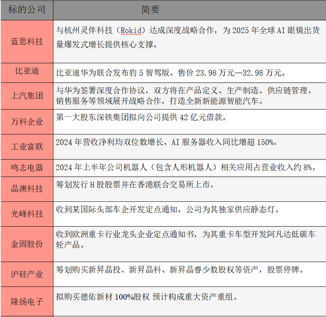 ①深圳:近期将发布人形机器人专项政策,在全市科技重大专项中安排人工智能和机器人专项。